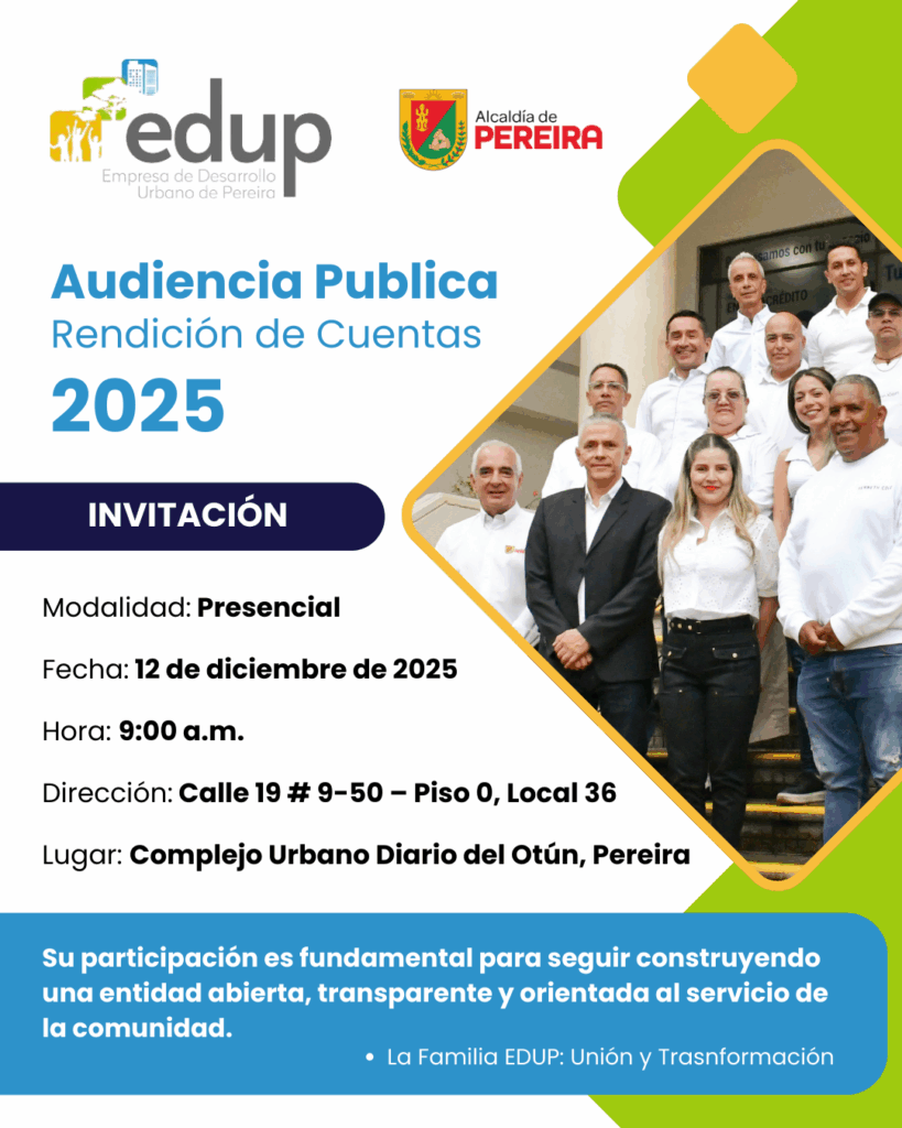 EDUP invita a la Audiencia Pública de Rendición de Cuentas 2025 – Diciembre 12 2025 > Más información